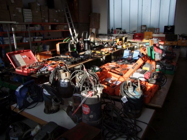 Radlader (Volvo, Kramer, Atlas), Minibagger, Minikran/Spinnenkran, Telelader, Gabelstapler Fabr. Still, Gelenk- und Scherenhebebühnen, Kettenlader Fabr. MachPro, PKWs (BMW, Ford Taunus Oldtimer, Toyota), Kran-LKWs Mercedes Atego und Sprinter, Transporter-Doppelkabiner, Bauwagen, Walzen, Rüttelplatten, Baggeranbaugeräte, Stromaggregate, Inverter-, Diesel- und Benzingeneratoren, Werkzeugschrankanlagen, Werkzeugschränke, Kleingeräte, Handmaschinen etc.