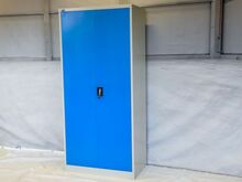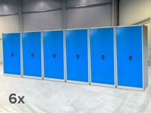 6 Stück Metallschrank Kromag KG-MS195/90/50 LG-B, 6 Stück: lichtgrau (RAL 7035) und Türen blau (RAL 5015), l/b/h: 90/50/195 cm, 4 Einlageböden, originalverpackt (je 103/8/199 cm, 45,5 kg)