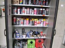 stabiler Metallschrank 2-türig mit Inhalt an versch. Farbspraydosen, Lacken, usw.