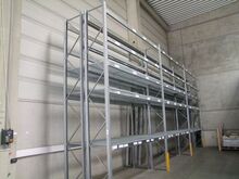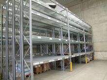 verzinktes Hochraumregallager mit 8 doppelten Stehern, Gittereinlegeböden, mit 5 Fächer, Länge ca. 3,60 m, Tiefe ca. 1,50 m, Höhe ca. 5 m, Fabr. Dexion, Typ P90M, Bj. 2012, Feldlast ca. 7.500 kg, Fachlast ca. 1.500 kg