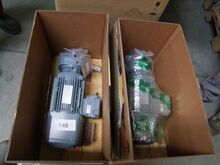 große Mengen an fabrikneuen Antriebsmotoren für Fördertechnik, sowie Lagerrollen, Pressen, Säulenbohrmaschine,