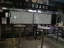 Absperrwand mit Schaukästen und 3 Stehtischen