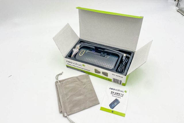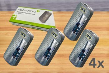 4 Stück Akku Mini Kompressor neovoltaic NV-AMK12, 4 Stück, 5 V, 2.000 mAh, 12 l/min, max. 7 bar, Autostop, intelligente Druckbeleuchtung, Zubehör: 4 Luftdüsen, 1 Luftschlauch, USB Kabel, Transporttasche
