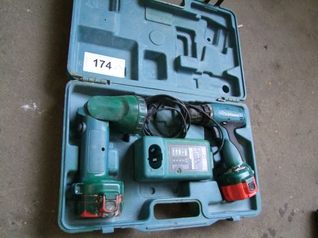 Akkuset bestehend aus 1 Akkuschrauber Fabr. Makita, Lampe, Ladegerät mit 2 Akkus