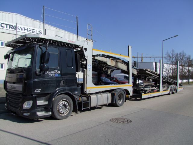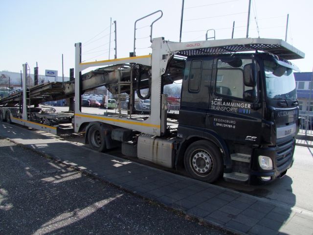 Autotransporter Fabr. DAF, Typ CF 440 FT, EZ 06/2019, Euro 6, ca. 440 PS / 320 kW, mit Transportaufbau Fabr. Rolfo, Typ Arctic 6, EZ 07/2007 hat VDI - Standort: Regensburg