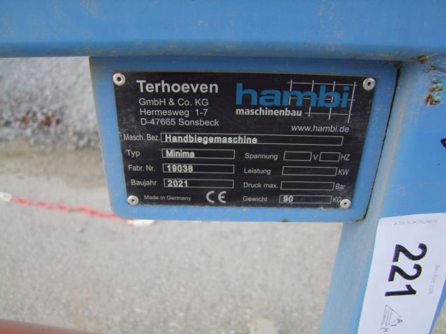 Baustahlmattenbiegemaschine Fabr. Hambi, Typ Minima, Bj. 2021, Einsatzgewicht ca. 90 kg, Fabr.-Nr. 19038