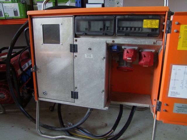 Baustromverteiler Satema ZSF 63 mit Zählerplatz, Alugehäuse, Ausgänge 1x 63A, 1x 32A, 1 x 16 A, 1 x 230V, mit FI etc.