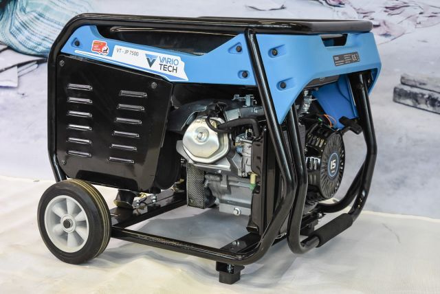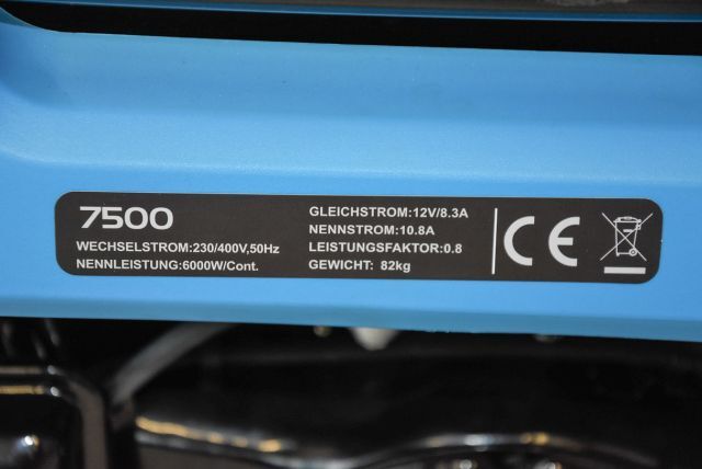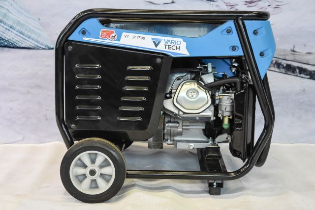 Benzingenerator Vario Tech VT-JP7500, Benzingenerator, 7,5 kVA, max. Leistung 6,5 kW, Nennleistung 6 kW, Ausgang 2x 230 V, 400 V und 12 V/ 8,3 A, Kupferwicklung, Tankkapazität 25 Liter, Motorleistung 11 kW, 82 kg, mit Räder und klappbaren Transportgriff, Elektrostart, Listenpreis 1.480,-