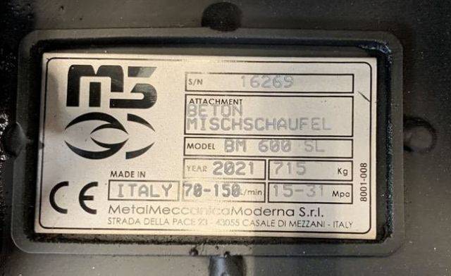 Betonmischschaufel Model BM 600 SL, Bj. 2021, Neupreis ca. 7.000