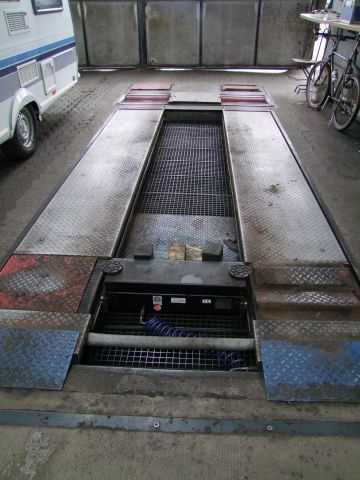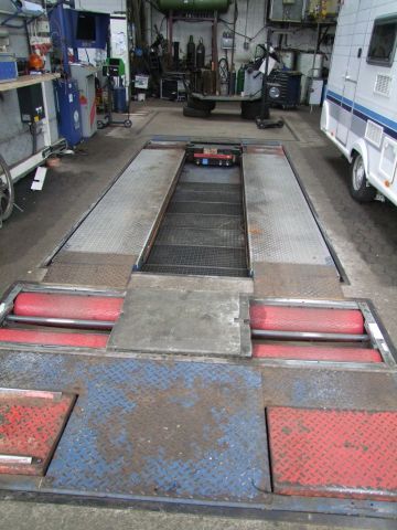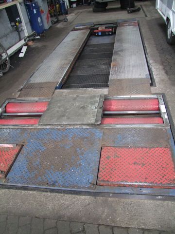 Bremsenprüfstand Fabr. Maha (Maschinenbau Haldenwang), Bj. 1994, mit Rüttelplatz für Stoßdämpferprüfung, Hebebühne und integriertem Ausheber und Prüfplatten für Lenkgelenke, die über eine Fernbedienung gesteuert sind, der Rollensatz des Bremsenprüfstandes ist ca. 4 Jahre alt, der Prüfstand besitzt eine ASA-Schnittstelle um Hauptuntersuchungen durchführen zu können, des Weiteren ist er kalibrierfähig, Stück- und Kalibrierprüfung gültig bis 12/2025 - von Privat, Umsatzsteuer fällt nur auf das Aufgeld an