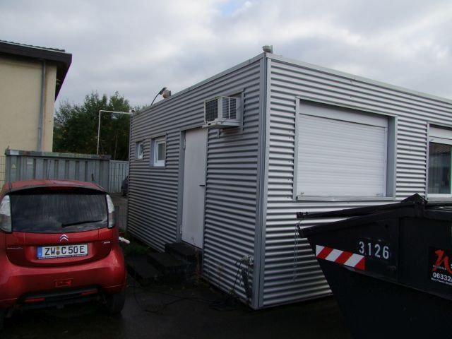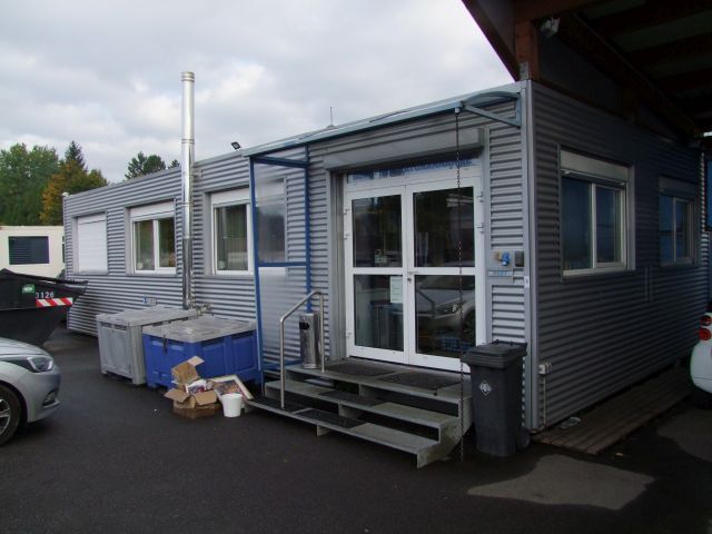 Containeranlage als Büro ausgebaut bestehend aus 4 Stk. 20 Fuß Containern mit jeweils 3 m Breite, Außensichtfassade Alu