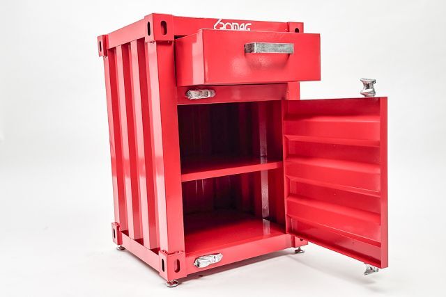 Designschrank Kromag KroCon KG-CON, rot, ca. 41/38/58 cm, vintage/antik Stil, Material: Eisen, mit Zwischenboden und Schublade, inklusive 4 Fußelementen und Schloss, Gewicht: ca. 10 kg, Karton 11
