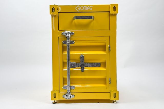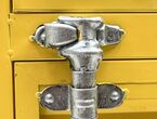 Designschrank Kromag KroCon KG-CON, gelb, ca. 41/38/58 cm, vintage/antik Stil, Material: Eisen, mit Zwischenboden und Schublade, inklusive 4 Fußelementen und Schloss, Gewicht: ca. 10 kg, Karton 14