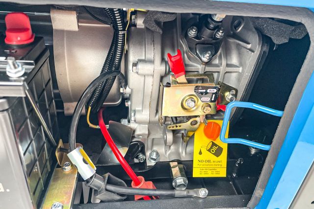 Dieselgenerator Vario Tech VT-DG8500SE-N3 Dieselgenerator, schallgedämmt, Motorleistung 8,5 kW, max. Leistung 7,5 kVA (6 kW), Nennleistung 6,875 kVA (5,5 kW); 12 V, 230 V und 400 V Ausgang; 7,9 A, 50 Hz, Digitaldisplay, Elektrostart, 150 kg, mit Serviceklappe, 2 lenkbare und 2 fixe Räder, originalverpackt (91/53/73 cm, 160 kg), Listenpreis 2.890,