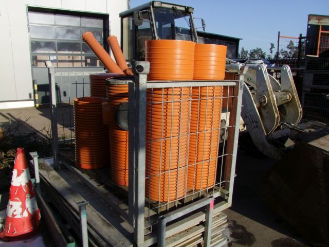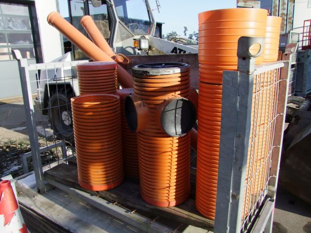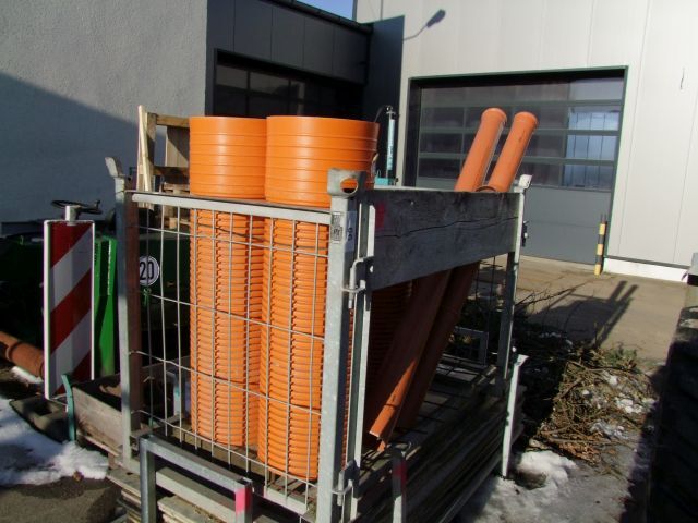 Gitterstapelbox mit Inhalt an Drainage-Revisionsrohre mit Verlängerungen