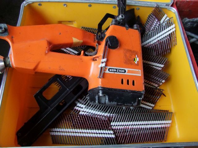 Druckluftnagler Fabr. Holzher, Typ 3540, mit Nagelmagazinen, im Koffer