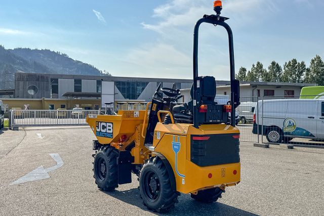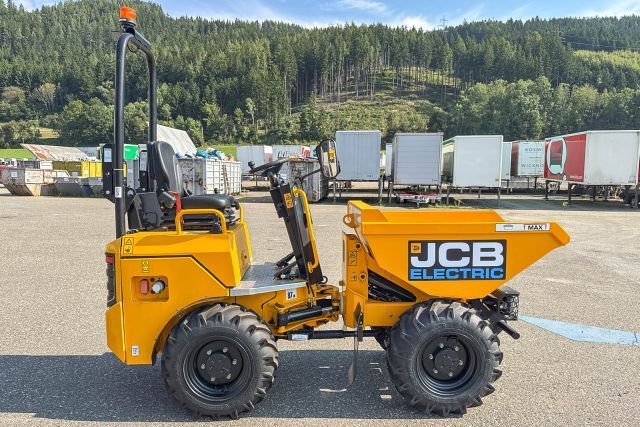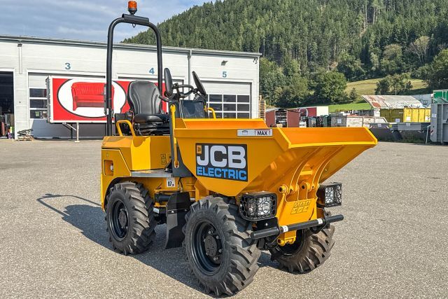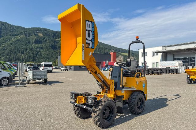 Elektro Dumper JCB 1T-2E, 10 kWh Batterie, 20 kW Spitzenleistung, 7,9 Betriebsstunden, 48 V Systemspannung, Baujahr: 01/2023 , Gewicht und Abmessungen Nutzlast: 1.000 kg, Betriebsgewicht: 1.650 kg, zul. Gesamtgewicht: 2.650 kg, Sonderausstattung Bereifung: 255/75 - 15.3