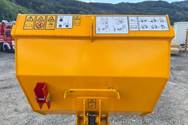 Betriebsgewicht: 1.650 kg, zul. Gesamtgewicht: 2.650 kg, Sonderausstattung: Bereifung: 255/75 - 15.3, Hochkippmulde, Muldenkapazität (Flüssigkeiten): 307 l, Muldenkapazität (gehäuft): 554 l, Gesamtlänge: 3.095 mm, Spurweite 870 mm, inkl. Ladekabel