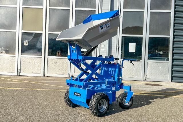 Elektro Hochkippdumper Vario Tech VT-MD500EP 4x2, 1.000 W Bu?rstenloser DC Motor, 48V 20Ah Bleisa?ure Batterie, Nutzlast: 500 kg, Bereifung: vorne: 6.50-8, hinten: 5.00-6, Geschwindigkeit: Stufe 1 - 2.5 km/h, Stufe 2 - 5.3 km/h, Stufe 3 - 6.5 km/h, Retourgang: 2.0 km/h, 6-8 Stunden Einsatzzeit, 8 Stunden Ladezeit, integriertes Ladegera?t, hydraulische Kippfunktion, hydraulische Hubfunktion: ca. 40 cm, Gesamtentleerho?he: ca. 135 cm, Eigengewicht: 305 kg, Abmessung: ca. 177/89/114 cm, Baujahr 2024