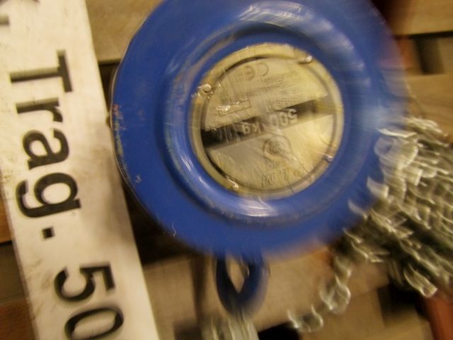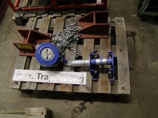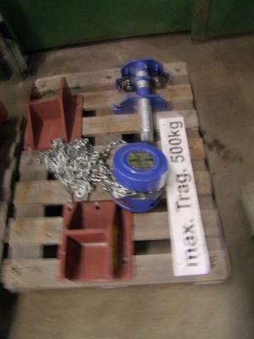 Flaschenzug Fabr. PLM, mit Laufkatze, ca. 500 kg Hubkraft