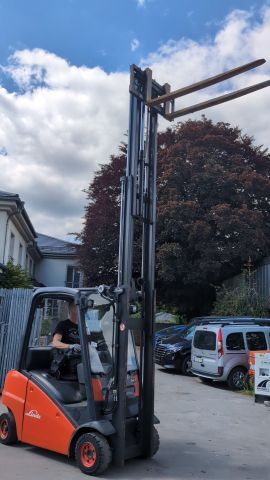 Gabelstapler Linde H16, Bj. 2013, abgelesen ca. 18.068 B.Std., Tragfähigkeit ca. 1.600 kg, Hubhöhe ca. 4,60 m, hydr. Seitenschieber, gasbetrieben, Kabine, SNr. H2X391D01866 - UVV 08/25 abgelaufen