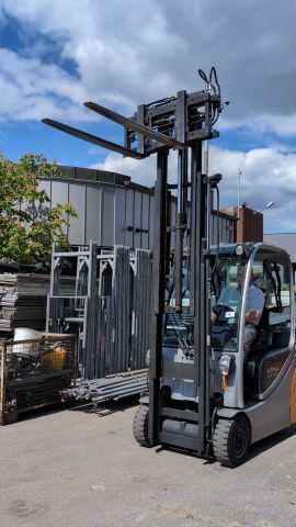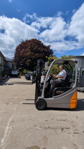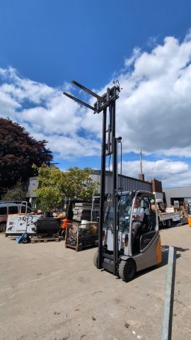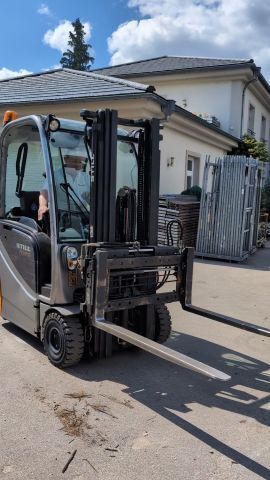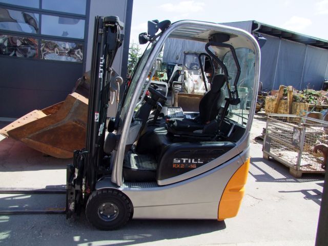 Gabelstapler Fabr. Still, Typ RX20-16, Bj. 2007, abgelesen ca. 10.872 B.Std., Tragfähigkeit ca. 1.600 kg, Hubhöhe ca. 4,60 m, elektrobetrieben, mit Triplexmast, Freihub, Seitenschieber und Zinkenverstellung, Batterie aus 2019, mit Ladegerät, Batterie ca. 48 kW - UVV 04/25 abgelaufen - könnte auch als Stromspeicher für Stromversorgung benutzt werden