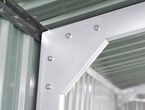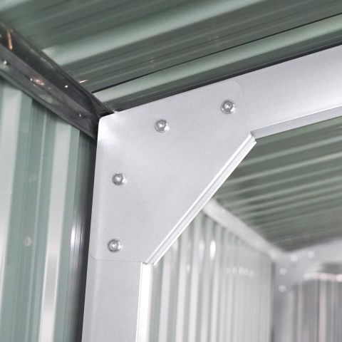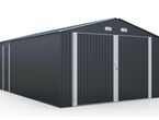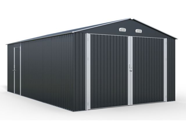 Garage Kromag KG-G23, Stellfläche: ca. 23 m2, Abmessungen l/b/h 602/386/237 cm, Material Rahmen: Verzinkter Stahl, 0,6 1,0 mm stark, Stahlrohre: 0,8 mm stark, pulverbeschichtet, Wände & Dach: Verzinkte Stahlbleche, 0,25 mm stark, lackiert, Satteldach mit 4 Lüftungsöffnungen für optimale Belüftung und Kondensationsschutz, Große Doppelflügeltür vorne: ca. 288/197 cm, Seitentür mit Einzelflügel: ca. 78/186 cm, Türen verschließbar, Inklusive verstärktem Dachrahmen und Wandverstrebungen, ideal für Fahrzeuge, Werkzeuge oder als zusätzlicher Stauraum, originalverpackt in 1 Holzkiste ca. 290 kg (212/74/42 cm)