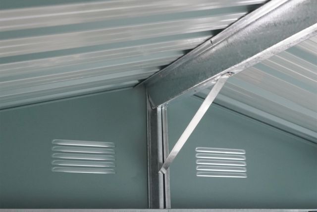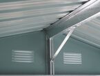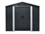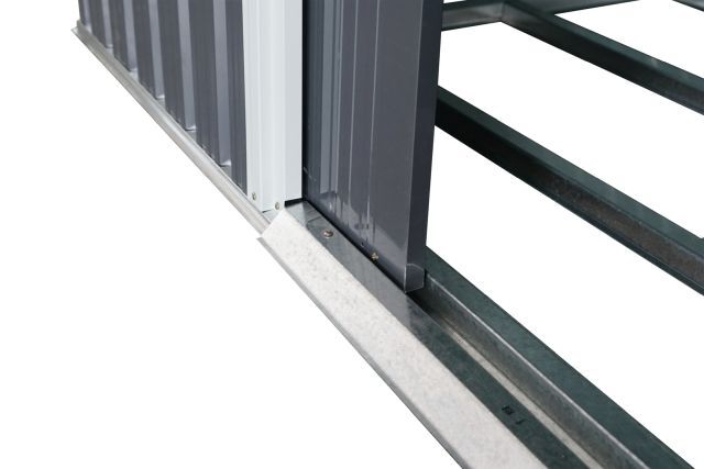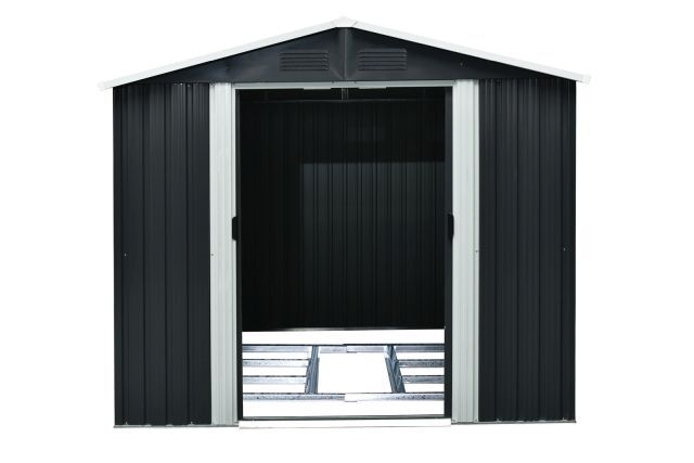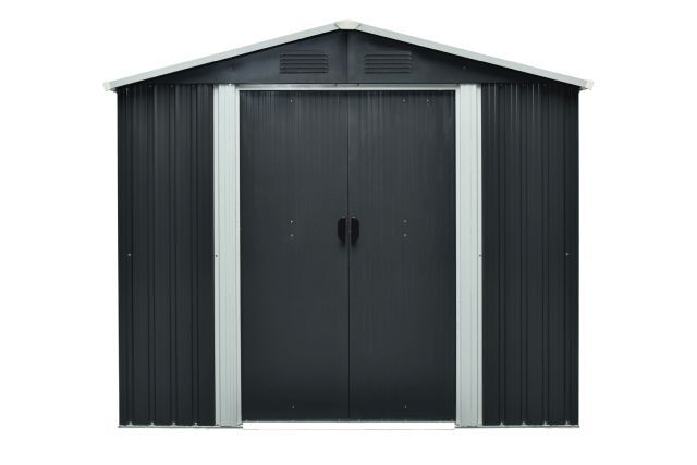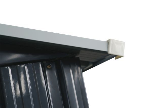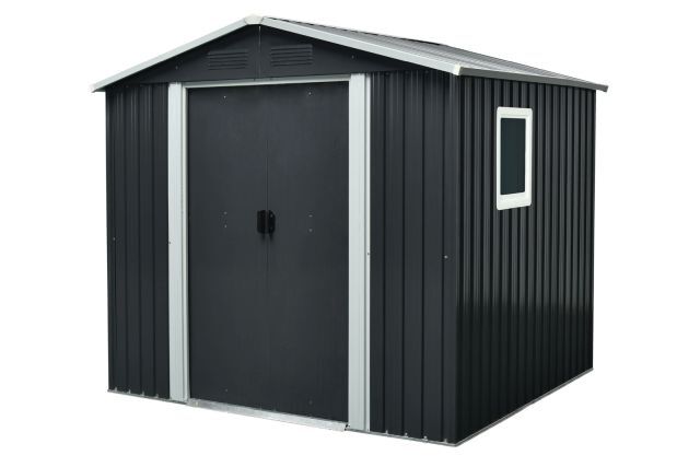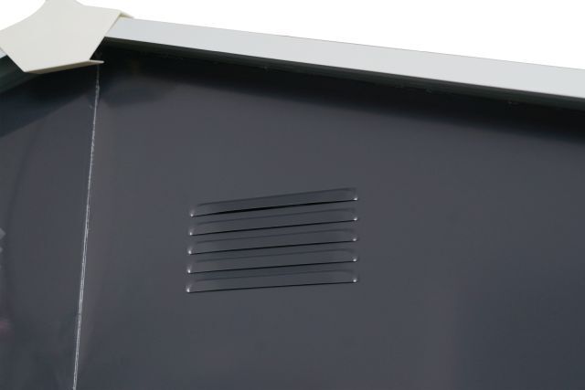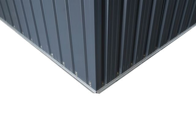 Gerätehaus Kromag KG-GH04, ca. 4 m2, Abmessungen l/b/h 174/236/190 cm, Material: Robuster, verzinkter Stahlrahmen (0,6 mm), Witterungsbeständige Stahlblechverkleidung (0,25 mm), Dach: Satteldach-Design mit vier integrierten Lüftungsöffnungen für optimale Luftzirkulation, Fenster: Seitliches Fenster (43/33 cm) für natürlichen Lichteinfall, Türen: Doppelschiebetüren, platzsparend und abschließbar, Türmaße: ca. 154/82 cm, Farbe: Anthrazit (RAL 7016), Fundament & Montageset: Inklusive Metallfundament und vollständigem Montageset (SA-SET03), originalverpackt in 1 Karton ca. 66 kg (168/56/16 cm),