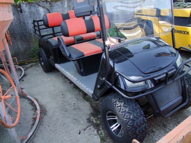 Golfcart 4-Sitzer, mit großem Motor, schwarz, mit Windschutzscheibe und Schutzdach, Geländebereifung - fabrikneu