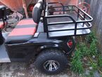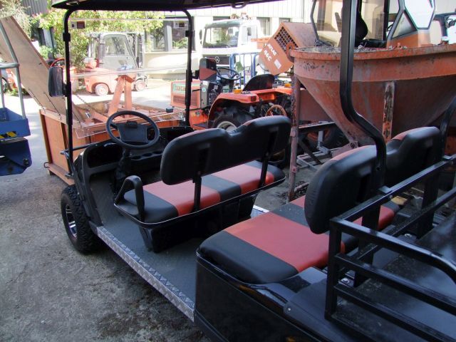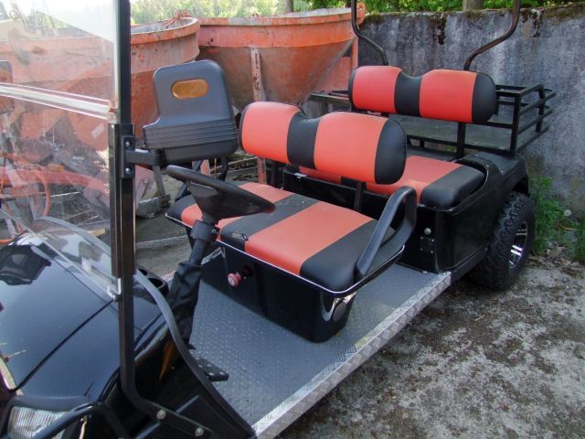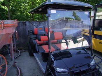 Golfcart 4-Sitzer, mit großem Motor, schwarz, mit Windschutzscheibe und Schutzdach, Geländebereifung - fabrikneu