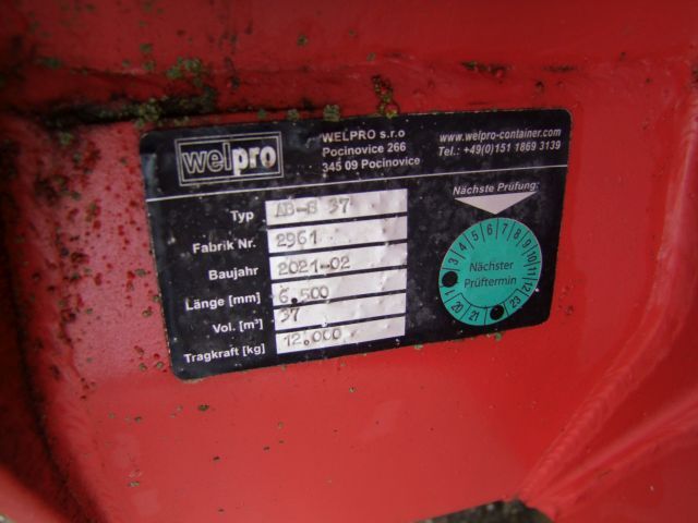 Großraumhakenabrollmulde Fabr. Welpro, Typ AB-S 37, Bj. 2021, ca. 6,90 m x 2,47 m x 2,60 m, ca. 37 m³ Tragkraft ca. 12.000 kg - Standort: Steinberg