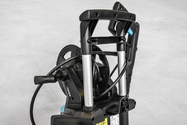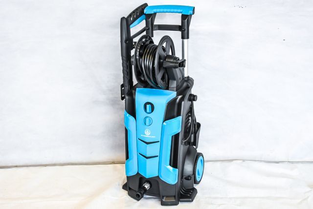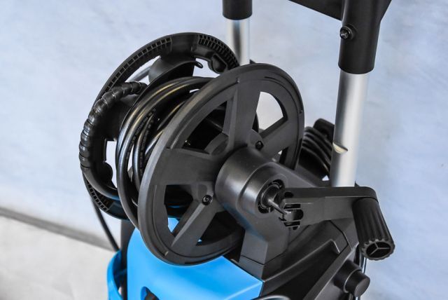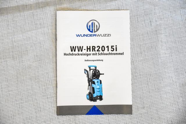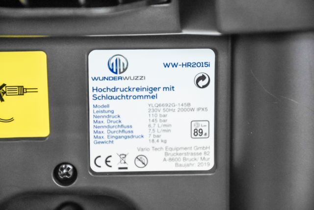 Hochdruckreiniger mit Schlauchtrommel Wunderwuzzi WW-HR2015i, 2000 W, Induktionsmotor, Nenndruck 110 bar, Max. Druck 145 bar, Leistung mit Drehschalter regulierbar, Stromkabel 5 m, Hochdruckschlauch 5 m, 3fach Axialkolbenpumpe, Reinigungsmittelbehälter, ausziehbarer Griff, originalverpackt (40/36/80 cm, 20,2 kg)