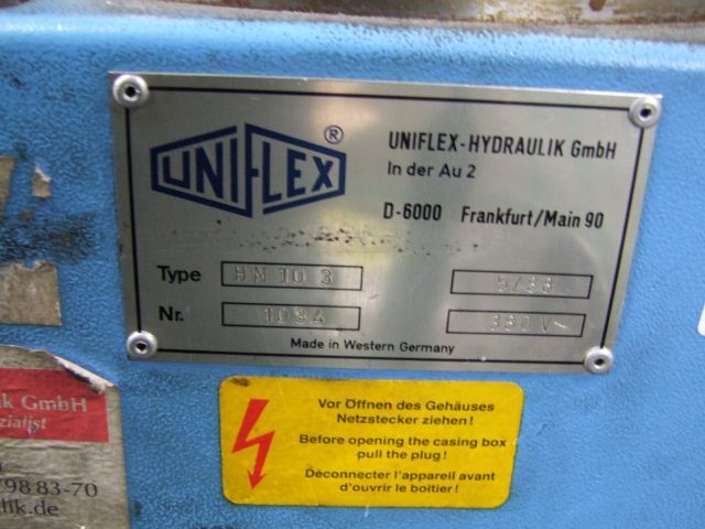 komplette Hydraulikschlauchpressanlage Fabr. Uniflex mit Zubehör an Schläuchen, Fittingen, etc. - Wert Lagerbestand ca. 9.000