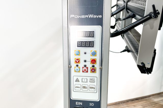 Infrarottrockner Power Wave PW-IT6KW, 6 kW (6*1000W), 230V, intelligenter digitaler Infrarottrockner, Aufwärmzeit 1 bis 5 Minuten, Trocknungszeit einstellbar, höhenverstellbar von 400 bis 2500mm (Gasdruckdämpfer sperrbar), Arbeitsdistanz von 600 bis 800mm, Arbeitstemperatur 60 - 70°C, Trocknungsbereich 1000 x 2000mm, 72 kg schwer, Trockenlichteinheiten einzeln steuerbar, aus Aluminium und Edelstahl, digitales Steuerungspanel, der hydraulische Arm kann um 300° gedreht werden, konventionelle Funktion, Puls Ultraschallfunktion und Impulsfunktion