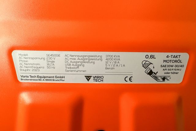 Invertergenerator Vario Tech VT-SE4500iE, Invertergenerator mit Handstarter und Elektrostarter, Generatorleistung max. 4,2 kW, Generator Nennleistung 3,7 kW, Kunststoffgehäuse, Ausgang 230V und 12V, Fernsteuerung mittels App - NeoControl, ausklappbare Räder für den leichteren Transport über Stufen, ausfahrbarer Griff - Trolleyfunktion, 650/475/550 mm, 48 kg, Listenpreis 1.640,-