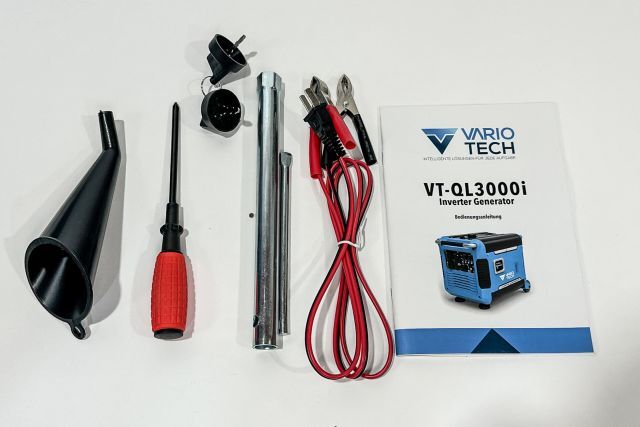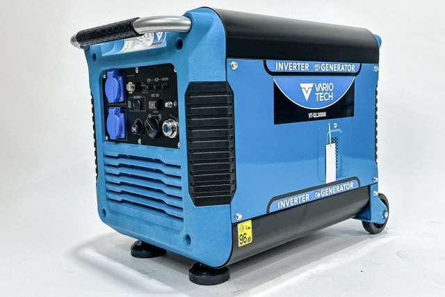 Invertergenerator Vario Tech VT-QL3000i, mit Elektrostart und Handstarter, Motorleistung 4,41 kW, Generatorleistung max. 2,9 kW, Generator Nennleistung 2,7 kW, Ausgang 2x 230 V und 12 V, 710/420/530 mm, 49 kg, Handgriff ausziehbar und fahrbar wie ein Trolley, Listenpreis 1.369,-