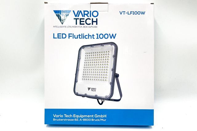4 Stück LED Flutlicht Vario Tech VT-LF100W, 4 Stück, 100W, 12.000 Lumen, wasserdicht IP65, Aluminiumgehäuse, Lichtfarbe 5000K, Abstrahlwinkel 90 Grad, für Wandmontage, einzeln originalverpackt