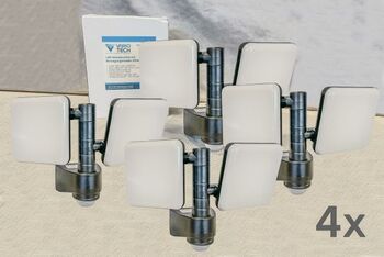 4 Stück LED Wandleuchte mit Bewegungssensor Vario Tech VT-LWLB20W, 4 Stück, 20W, 1650 Lumen, IP54, Strahlwinkel 120°, Sensorreichweite 1 bis 8 m, Sensorzeit 10 sec bis 10 min einstellbar, Lichtfarbe 5000K, 134/330/230 mm