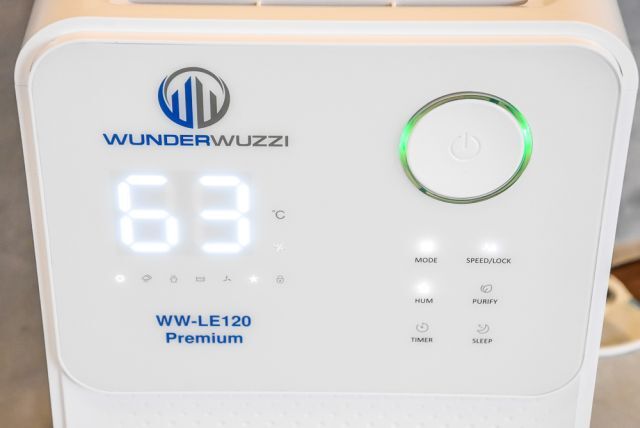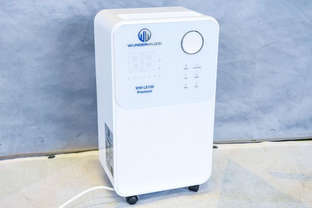 Luftentfeuchter Wunderwuzzi WW-LE120 Premium, 190 W, Kompressor (Rollkolbenverdichter - leise und wirkungsvoll), Touchbedienung, Voreinstellung der gewünschten Luftfeuchtigkeit (20% bis 95%), Ionizer, autom. Entfrostung, Timer, Autostop und Autostart, die Luftfeuchtigkeit wird in 3 verschiedenen Farben angezeigt, sehr effizient (niedriger Stromverbrauch - hohe Trocknungsleistung), Lärmbelastung ca. 36dB, Auffangbehälter 2 Liter (mit Überlaufstop), für Raumgrößen von 15 bis 25 m2, Luftzirkulation ca. 120 m3/h, Entfeuchtungsleistung max. 12 Liter pro Tag (30°C, 80%), 28/20/51 cm, originalverpackt (35/27/56 cm, 13,3 kg), Listenpreis 288,-