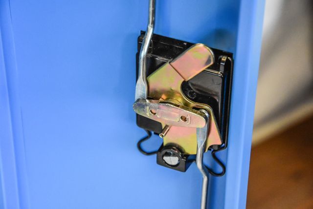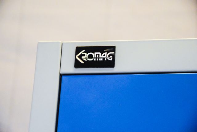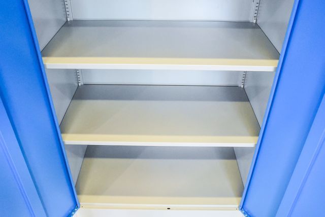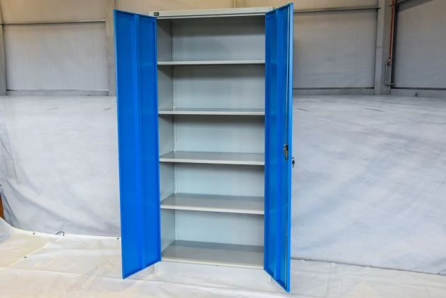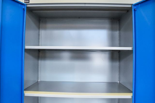 Metallschrank Kromag KG-MS195/90/50 LG-B, lichtgrau (RAL 7035) und Türen blau (RAL 5015), l/b/h: 90/50/195 cm, 4 Einlageböden, originalverpackt (103/8/199 cm, 45,5 kg)