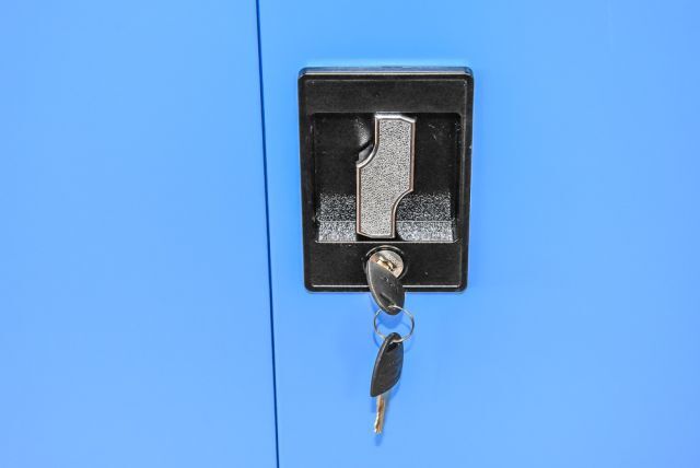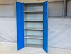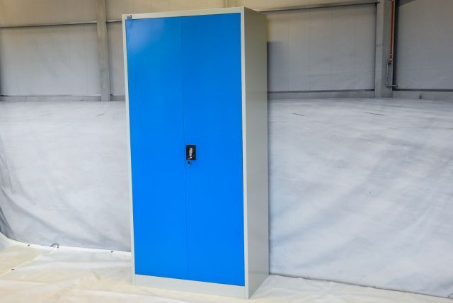 Metallschrank Kromag KG-MS195/90/50 LG-B, lichtgrau (RAL 7035) und Türen blau (RAL 5015), l/b/h: 90/50/195 cm, 4 Einlageböden, originalverpackt (103/8/199 cm, 45,5 kg)