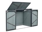 Mülltonnenbox Kromag KG-MTB480, 2x240 Liter, ca. 101/158/134 cm, 1,6 m2, Türmaße: ca. 124/135 cm, 0,6 mm starkes und verzinktes Stahlgestell, 0,25 mm starke verzinkte Stahlblechverkleidung, Fassungsvermögen: 2x 240 l, Öffnung mit Gasdruckfeder, Farbe: anthrazit (RAL7016), originalverpackt (2 Kartons)