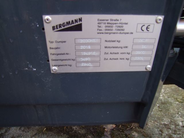 Muldendumper Fabr. Bergmann, Typ 2030HS, Bj. 2019, Gesamtgewicht ca. 3,5 to., mit Schwenkschaufel und Hochkippfunktion, Straßenzulassung