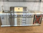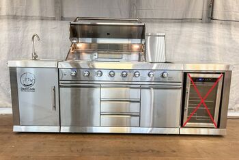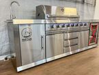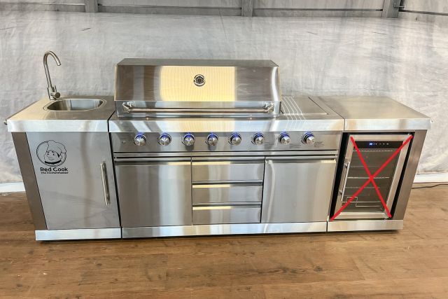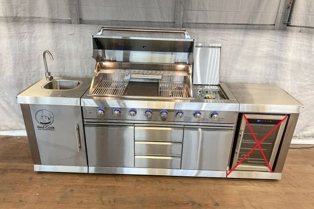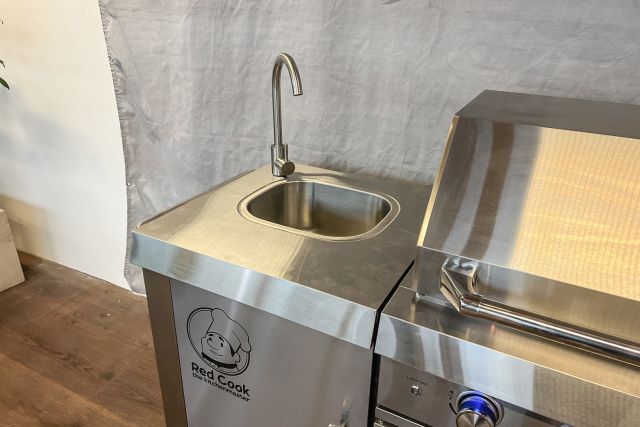 Outdoorküche Red Cook RC-OK213312, Edelstahl, l/b/h 2735/600/1190 mm, 8 Brenner (6 Hauptbrenner, 1 Infrarotbrenner an der Rückwand, 1 Brenner am Kochfeld), Abwäsche, Wasserhahn, regendichte Abdeckung, LED Beleuchtung ober den Drehknöpfen, LED Beleuchtung innerhalb des Grills, fahrbar - ohne Kühlschrank