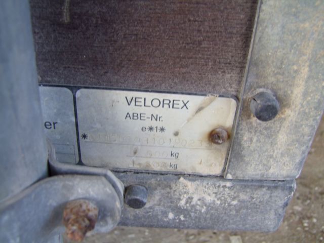 1-Achs-PKW-Anhänger Fabr. Velorex, Ladefläche ca. 2 m x 1,20 m - Standort: Steinberg