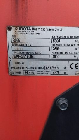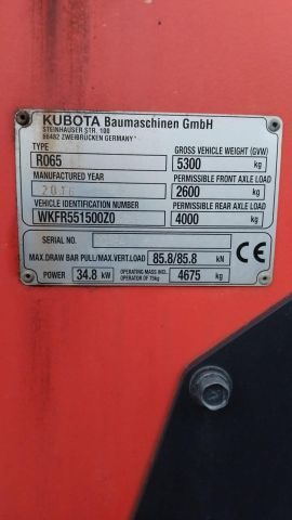 Radlader Fabr. Kubota, Typ R065, Bj. 2016, abgelesen ca. 2.201 B.Std., mit Standardschaufel und Gabel