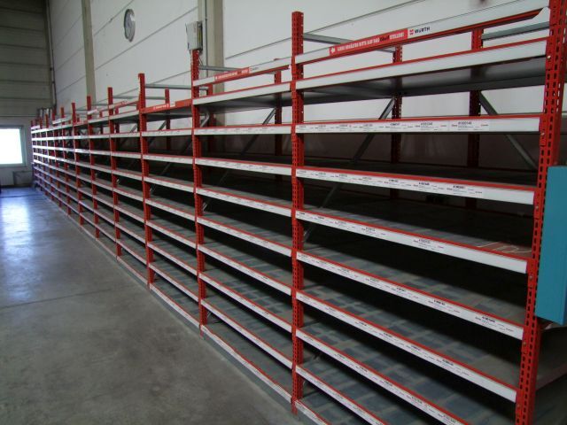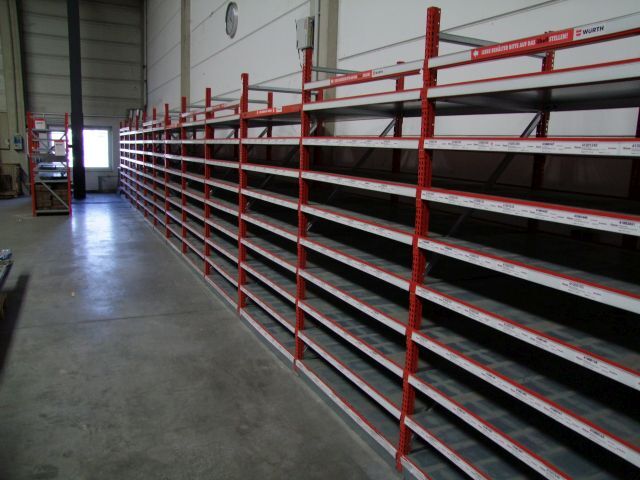 Schraubenregal Fabr. Würth, Höhe ca. 2,20 m, Tiefe ca. 80 cm, Feldbreite ca. 1,30 m, mit ca. 9 Fachböden pro Regal, ca. 15 Felder
