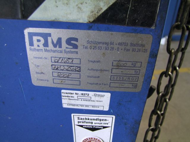 Schuttkippcontainer für Abfälle oder Metall, Fabr. RMS, Typ BKW-25083, Bj. 2008, Tragkraft ca. 600 kg