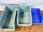 Schwerlastschüttenregal Kromag KG-SW136 ca. 96/61/156 cm, bestehend aus: Transportwagen mit Griff und 4 Schwerlastrollen (bremsbar), 64 Schütten PK013 (je ca. 10,5/19/7,5 cm), 24 Schütten PK014 (je ca. 14/22/12,5 cm), 48 Schütten PK015 (je ca. 14/27/12,5 cm) und Zubehör für Beschilderung der Schütten, originalverpackt