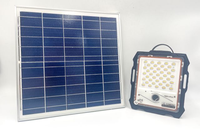 4 Stück Solar LED Outdoorlampe mit Kamera neovoltaic NV-SLOLK100, 4 Stück, Akku LED Scheinwerfer 100W mit Kamera (217/179/45 mm), 2 integrierte Akkus 3,2 V, 12 Ah, mit PV Modul (350/350/17 mm) 5 V, 20 W, Strahlwinkel 120°, APP gesteuert (tuya), dimmbar, Fotofunktion, Videofunktion, Bewegungserkennungsalarm, Zeitsteuerung, Leuchtzeit 10 bis 20 Stunden, Alugehäuse, mit Fernbedienung